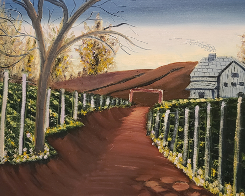Take a stroll down an old dusty trail with white picket fences on the sides;